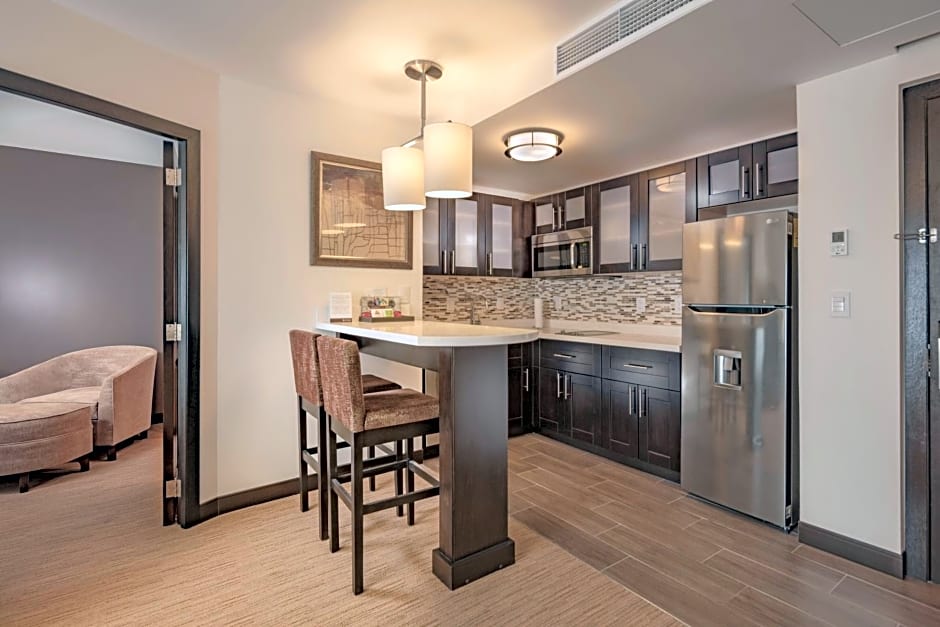 Experience comfort and convenience in our spacious One-Bedroom Suite with Two Beds - Non-Smoking. With its 463 sqft size, fully equipped kitchen, private bathroom, and luxurious amenities such as a bathtub, flat-screen TV, and air conditioning, this suite is perfect for accommodating a family of 4 adults and 3 children.